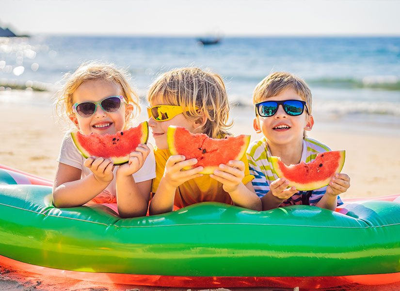 Sıcaktan ve hava değişiminin zararlı etkilerinden korunmalarına destek olmak için sıvı tüketimi de önem taşıyor. Tatil süresince çocuklarınızın bol bol su içmesini sağlayın.