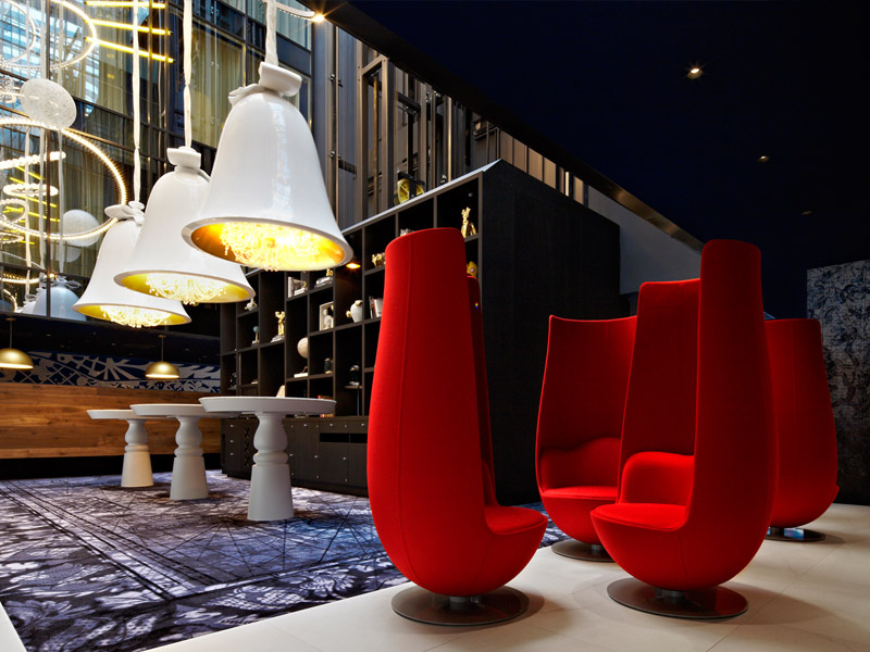 Tasarımın Lady Gaga’sı olarak da adlandırılan, Hollandalıların asi çocuğu Marcel Wanders’ın tasarımı Andaz Amsterdam, eski bir kütüphaneyken bugün bir tasarım oteli. Otelin tasarımında lale, deniz haritaları ve tahta ayakkabılar gibi Hollanda’nın birçok simgesini değişik yorumlarla kullanan sanatçı, yine Hollanda’ya özgü mavi rengini, halılardan duvar kağıtlarına ve el boyaması lavabolara birçok detayda kullanmış. Canal View Kings adlı oda, muhteşem kanal manzarasıyla diğer odalar içinde öne çıkıyor.